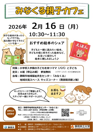 - 【参加親子募集】2026年2/16(月)みなくる親子カフェ「おすすめ絵本のシェア」
