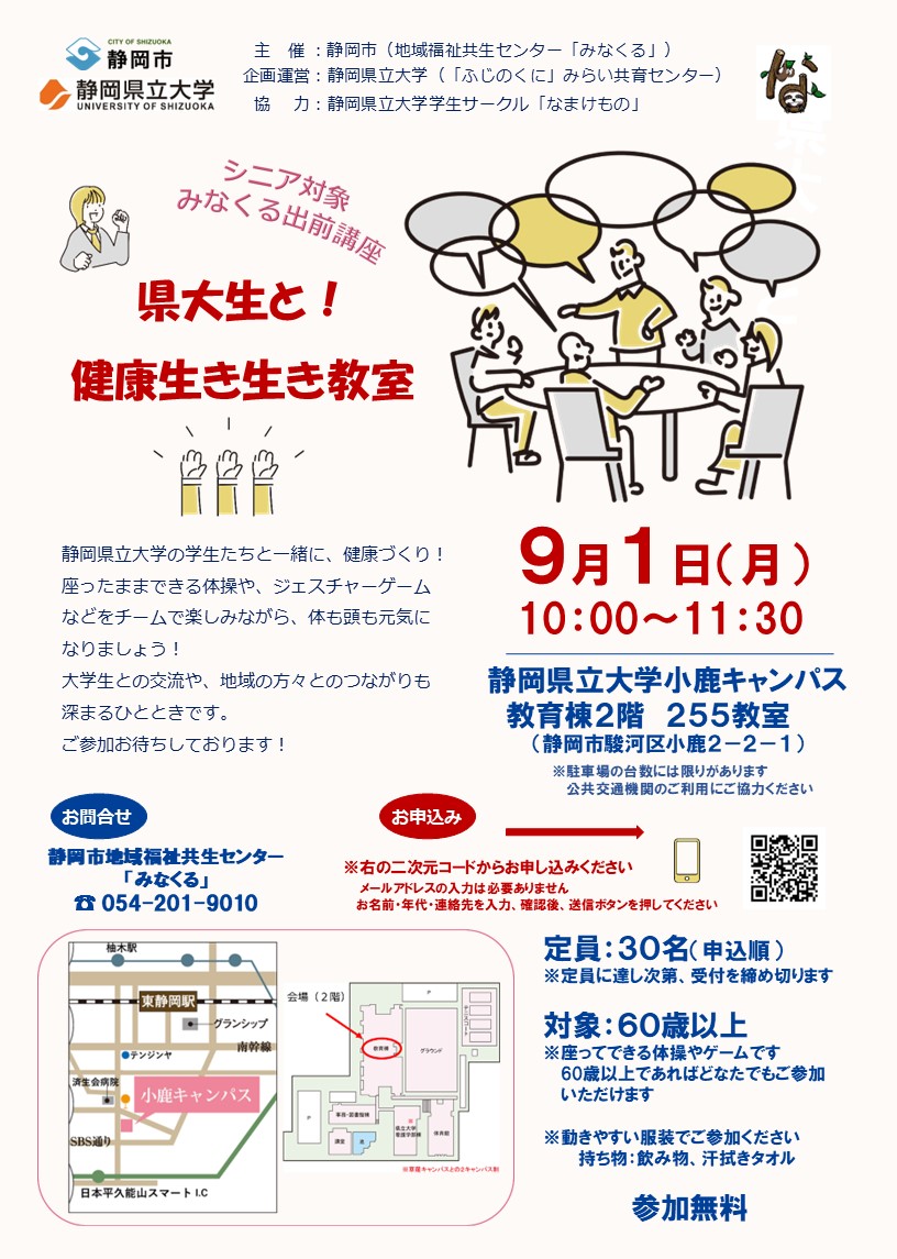 【@県大小鹿キャンパス】9/1(月)「県大生と!健康生き生き教室」