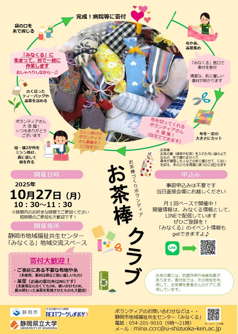 【申込不要!】10/27(月)お茶棒クラブ(ボランティア活動)