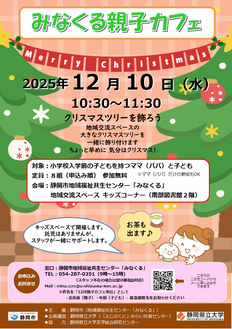 【参加親子募集】12/10(水)みなくる親子カフェ「クリスマスツリーを飾ろう」