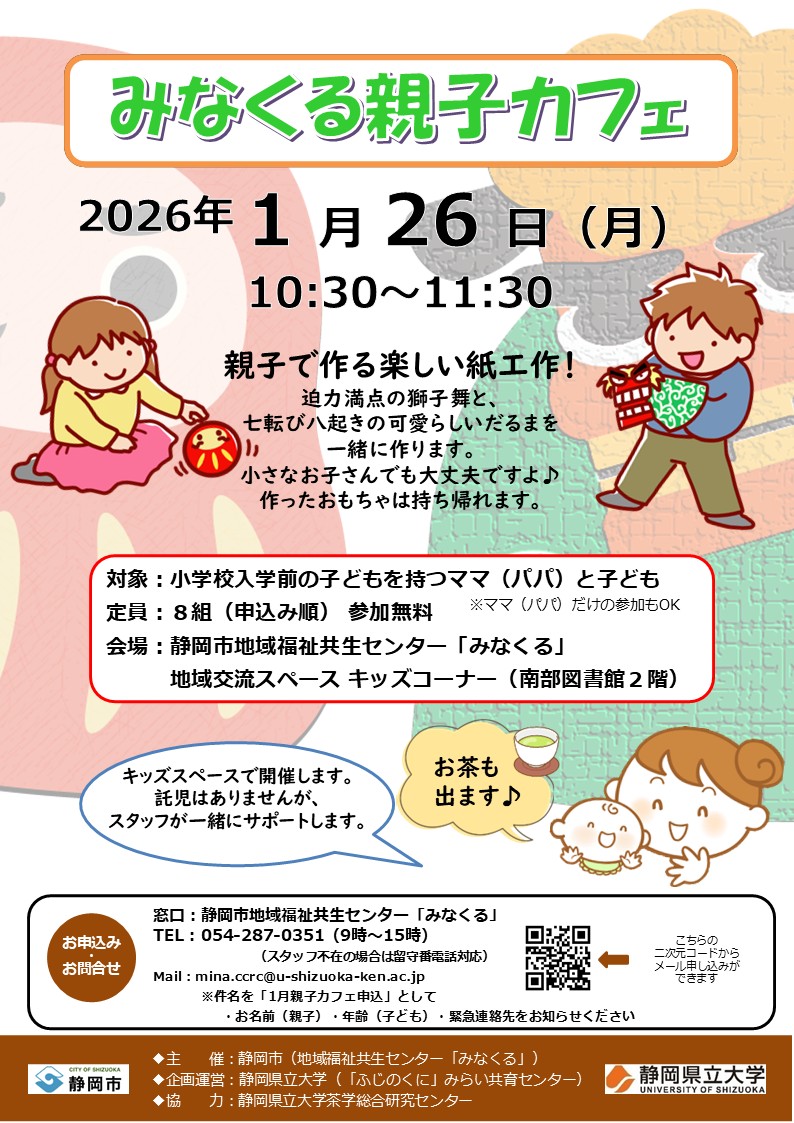 【参加親子募集】2026年1/26(月)みなくる親子カフェ「親子で作る楽しい紙工作!」