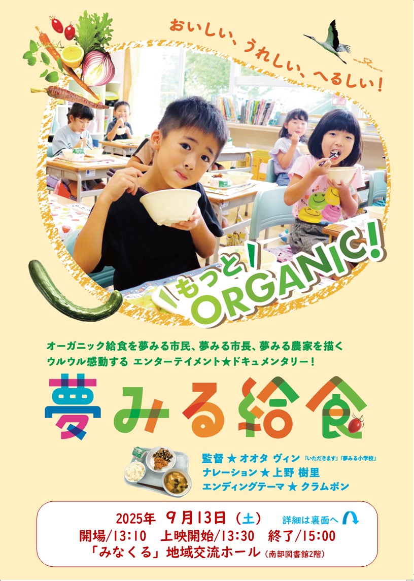 オーガニック給食を夢みる市民、夢みる市長、夢みる農家を描くウルウル感動する エンターテイメント★ドキュメンタリー!