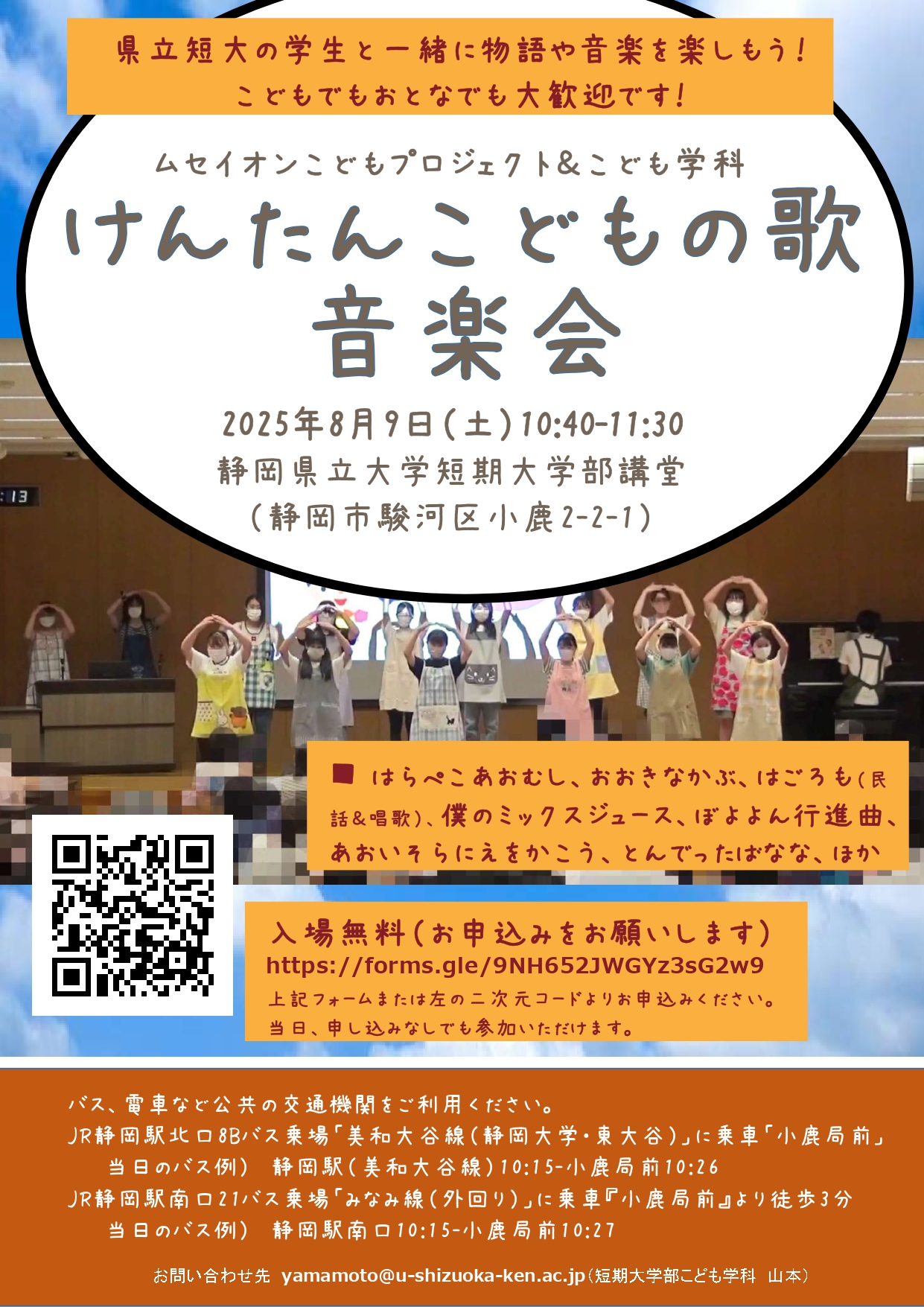 静岡県立短大の学生と一緒に、物語や音楽を楽しむ「けんたんこどもの歌音楽会」開催します♫
